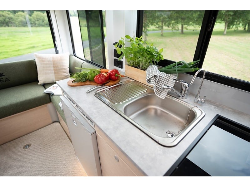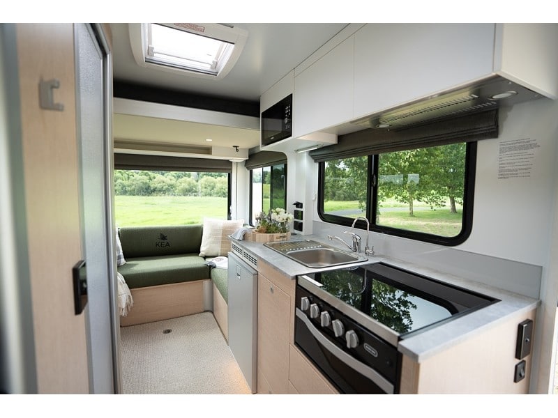 • Ultra reliable componentry in any weather condition, whether it's snow or a heat wave the reliable 2-way 12v 130L fridge, microwave and 4 element hob (3 gas & 1 electric) with grill will allow the chef in you to create gourmet meals on the go.