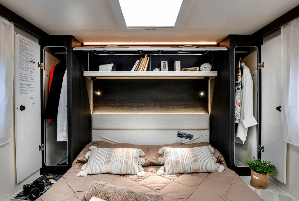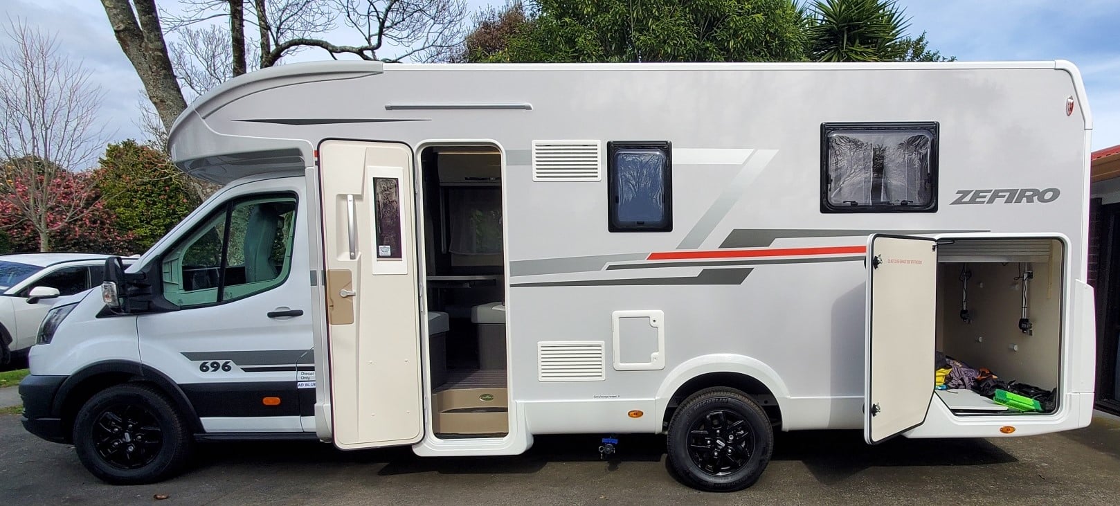 Meet the 3 ladies, 3 new luxury 2023 Ford Zifero 696\'s, that come with our most popular Queen sized (1950 x 1500) Island bed access from both sides of the bed in a private rear bedroom.