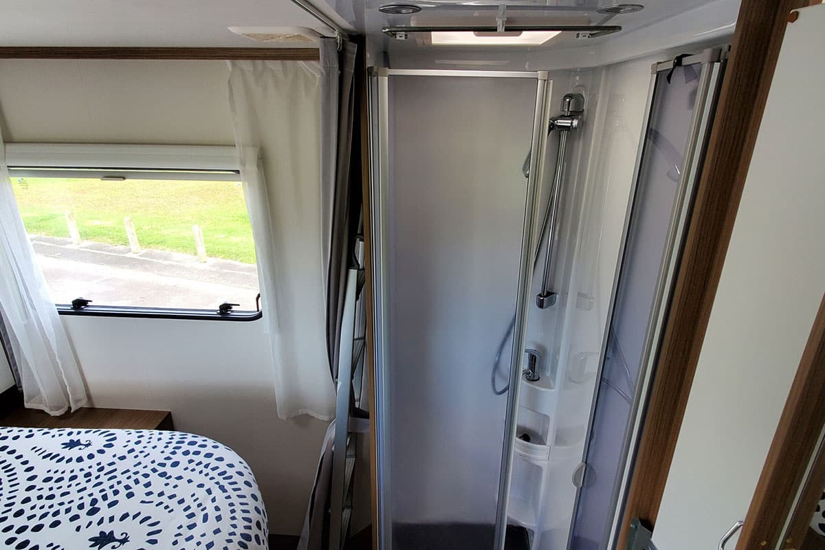 Both are seat belted for 4 people with a very comfortable Queen sized (1900 x 1500) Island bed in the rear bedroom which can be closed off for privacy, a convenient drop-down double bed (complete with safety nets for the kids) in the front, and a front lounge/dining area with swivelling front seats, separate full sized shower and a separate toilet gives you superior first-class travelling, perfect for couples wanting comfort style, Mum Dad and baby/toddler, or 3 or 4 bestie\'s who want something special.
